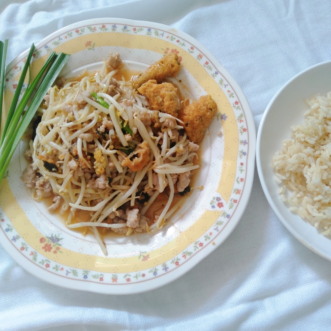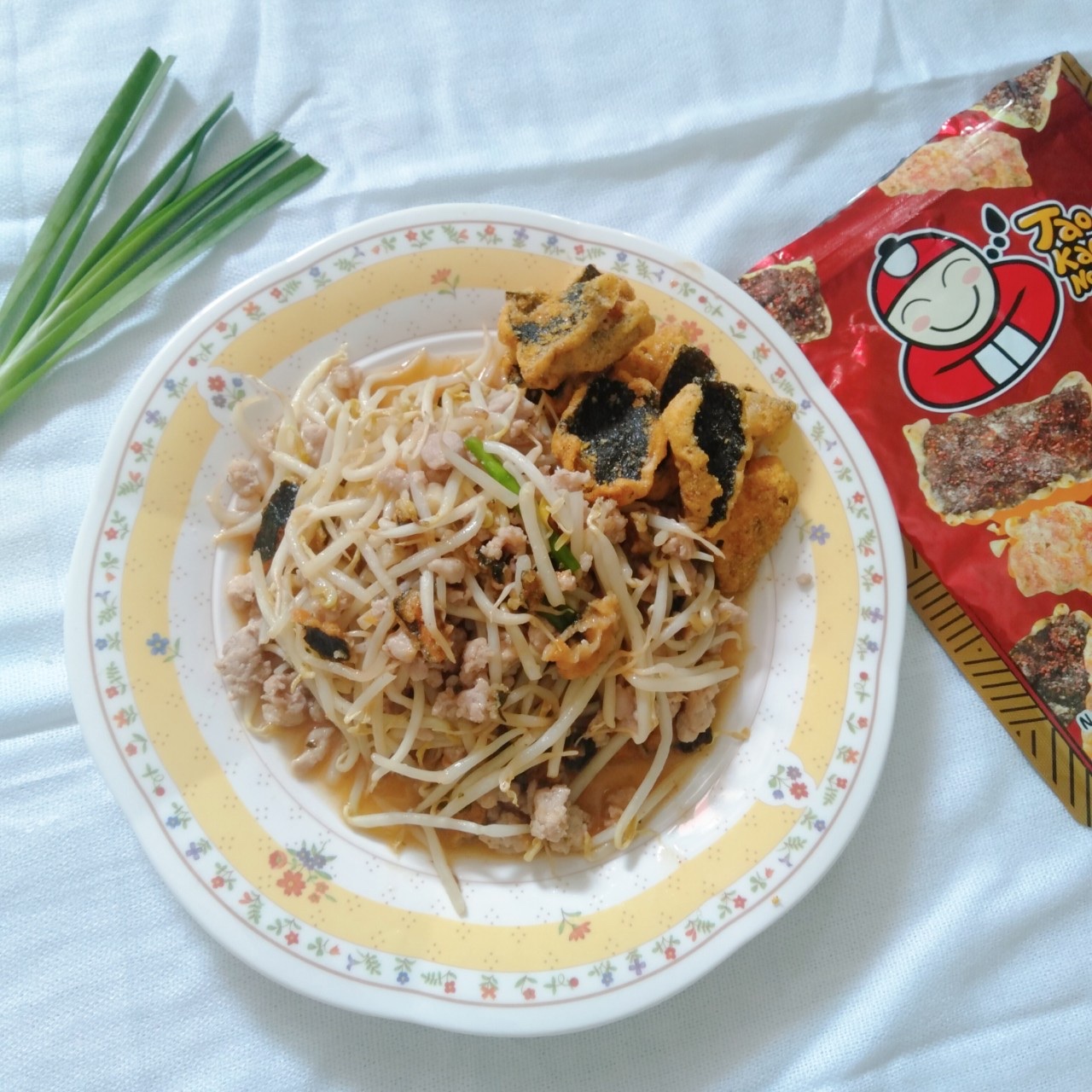 Step6:一盘泰式肉末海苔炒豆芽就做好啦,盛盘开吃吧。