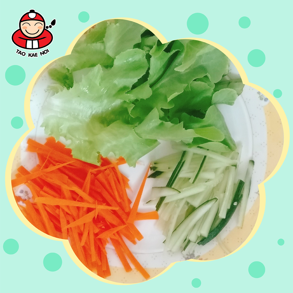 Step1:准备好食材,将胡萝卜和黄瓜切成细条,鸡胸肉切成丝。